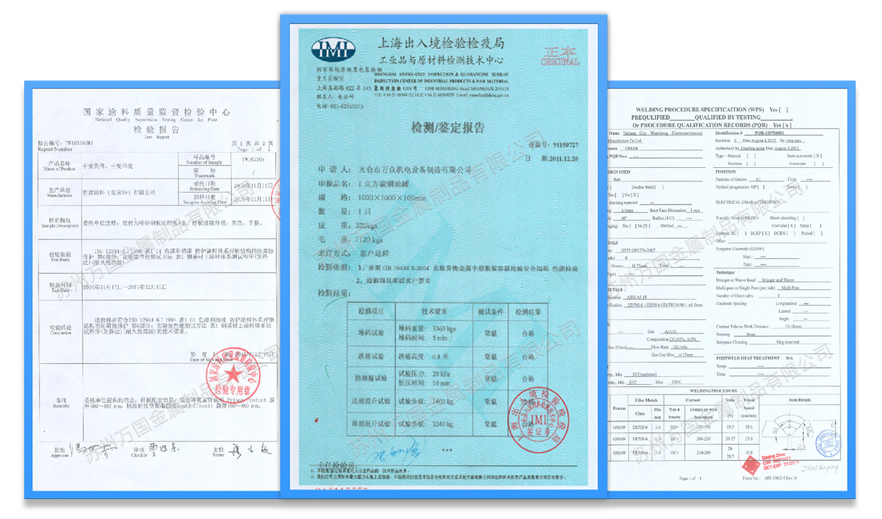 我們嚴(yán)格地運(yùn)行生產(chǎn)過(guò)程的質(zhì)量管控和成品檢驗(yàn),并擁有WPS焊接工藝評(píng)定、C4-H防腐認(rèn)證、罐體鑒定檢測(cè)報(bào)告等,確保給客戶(hù)提供高品質(zhì)、高性能的產(chǎn)品
